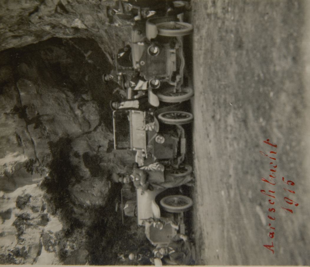 Auch die Fahrten nach Linthal und Stechelberg (1909), Lütschinen (1910), Muottas Muragl (1914), in die Aareschlucht (1915) und nach Brissago (1920) sind fotografisch dokumentiert. 1915 posierten die Clubmitglieder mit ihren Autos – zu einer Zeit, als diese in Baar noch an einer Hand abzuzählen waren. In den Protokollbüchern tauchen die vierrädrigen Untersätze bereits im Jahr 1912 erstmals auf. Damals waren die Vereinsmitglieder mit den Karossen der Herren Heinrich Henggeler und Christian Buck im Kanton St. Gallen unterwegs. Auf ihrer Spritztour fuhr die Baarer Delegation einen Hund an. 1913 wurde im Protokollbuch Heinrich Henggeler «für die Bezahlung der Gerichtskosten in Altstätten für den überfahrenen, aber nicht getöteten Hund anlässlich der Automobiltour im Jahre 1912 nach Balgach» gedankt.